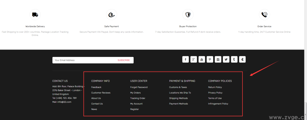 为了增强网站的信任度,给客户安全感,建议在加购按钮下方、网站底部区域,添加一些安全支付图标,尽量消除客户在质量、物流、支付等各个环节的顾虑。